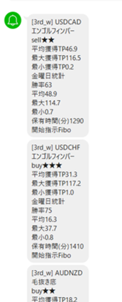 3rd_w_Ver1.2の初期設定が完了すると、1時間毎に該当通貨ペアの詳細情報をLINEで通知します。