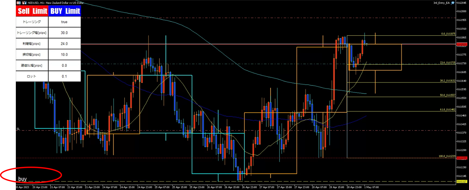 Entry_EAが立ち上がると方向を表示しFiboを描画します。