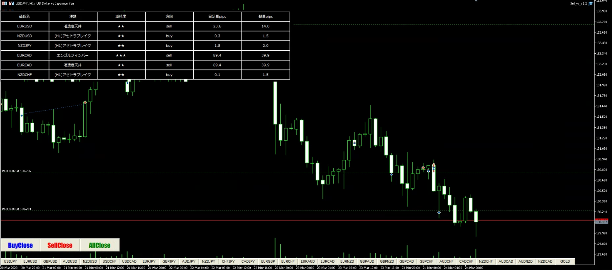 PCの前に居れば、受けた通知を確認し、3rd_w_Ver1.2内の通貨ペアボタンクリックで