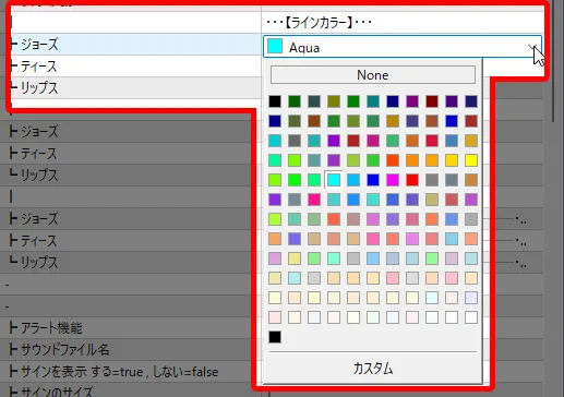 ジョーズ、ティース、リップスのラインカラーをそれぞれお好みに合わせて変更することができます。