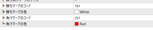 勝敗判定の〇×サインのアイコンと色を変更することができます。