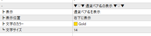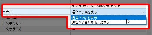通貨ペア名をチャート上に表示するかしないかを選択することができます。