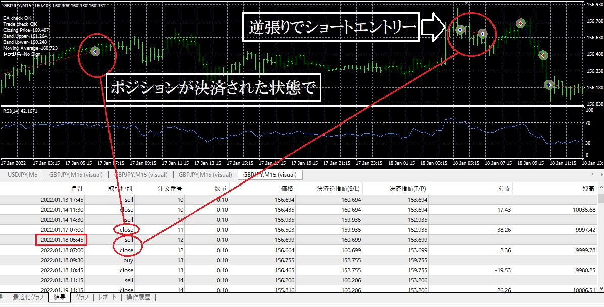 逆張りモードでは順張りとは反対方向に売買を行います。