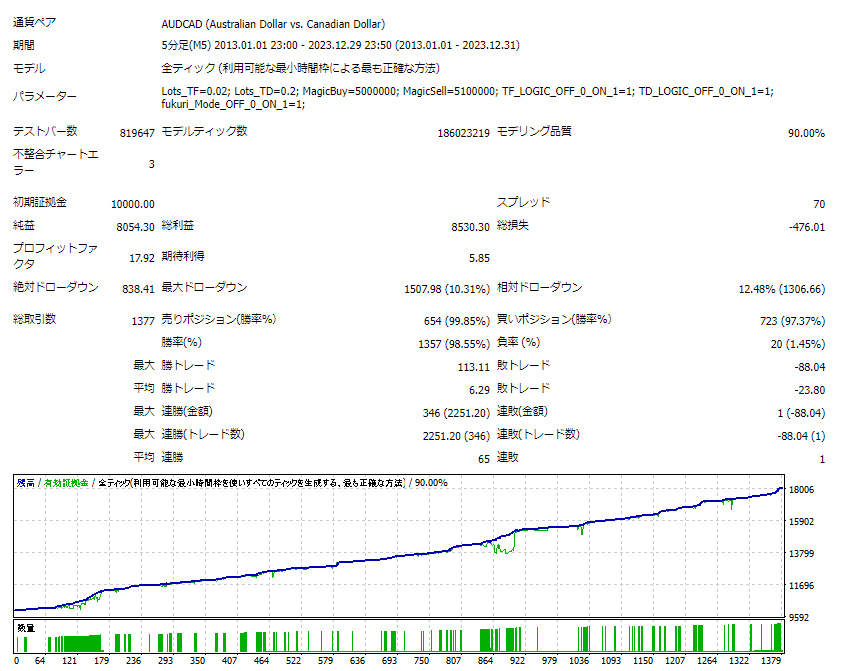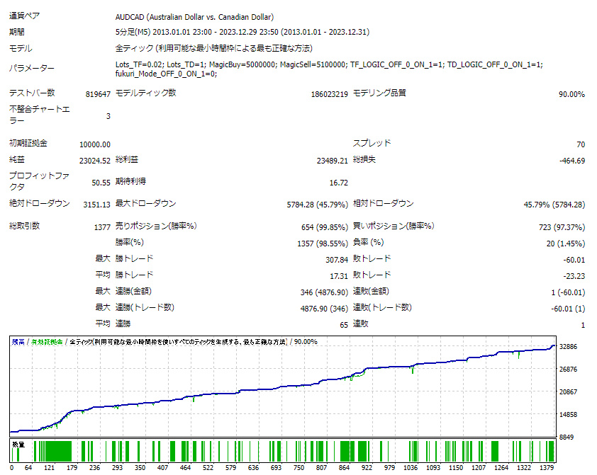 ◎バックテスト状況(2013/1/1 ~ 2023/12/31)