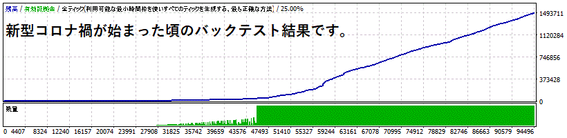 スパイク変動以外にも、大規模な社会不安や季節変動などでTickレベルのボラティリティが高まった場合の対応も、バックテストで動作を確認しました(バックテスト結果グラフをご参照ください)。