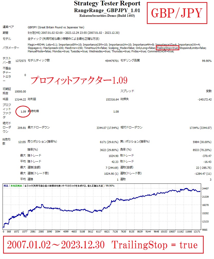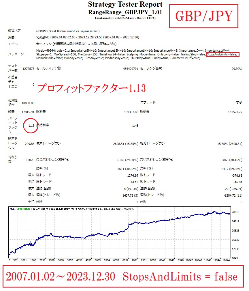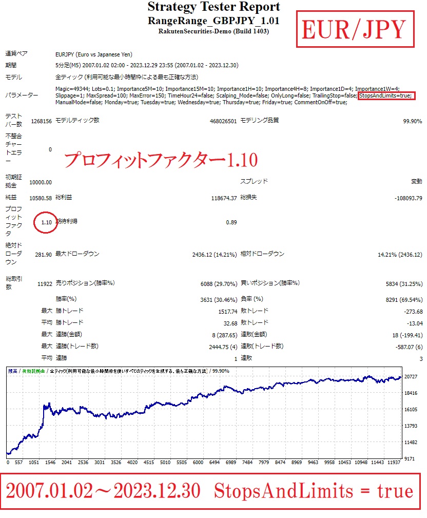 ユーロ円 2007.01.02~2023.12.30 のバックテスト結果