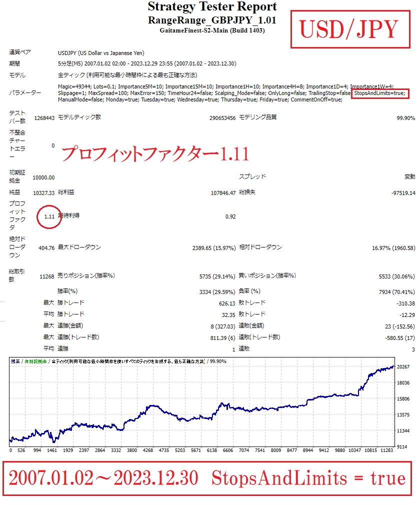 ドル円 2007.01.02~2023.12.30 のバックテスト結果