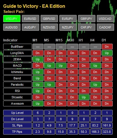 Up Level / Dn Level: 現在、いくつのインジケータがサインを出しているか(最大10)。