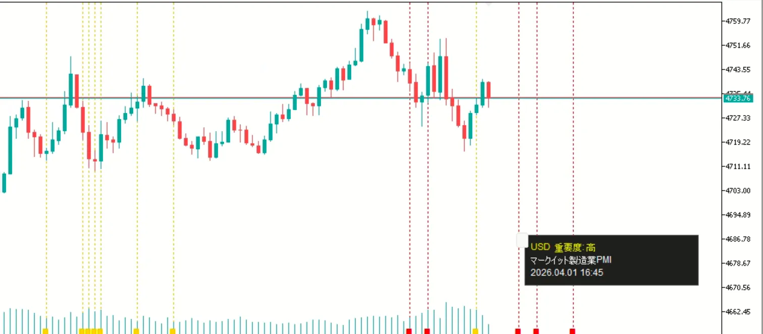 MT5内蔵の経済カレンダーを使用。インターネット接続さえあれば追加設定なしで動作します。